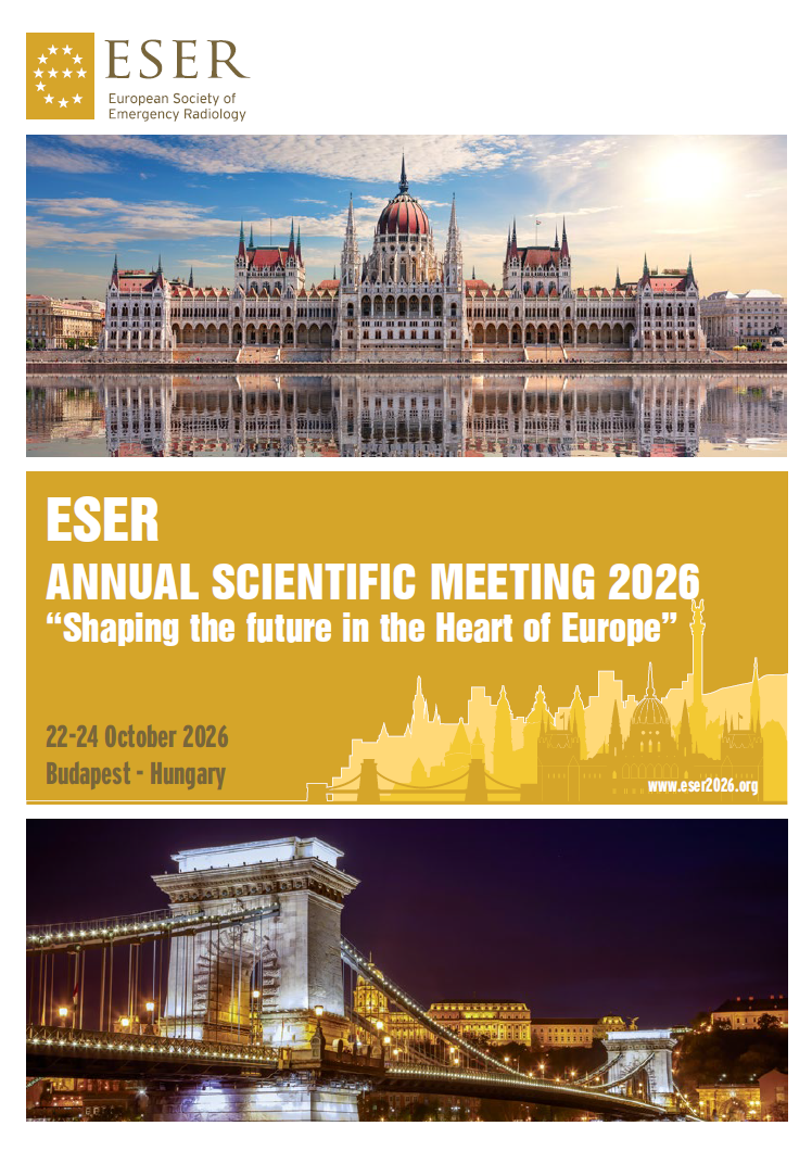 The two and a half days of the ESER meeting will focus on both emerging and essential topics in emergency radiology. The scientific programme will explore the expanding role of artificial intelligence and large language models in emergency reporting, imaging in poisoning and special patiens, and traumatic and non-traumatic abdominal emergencies. In addition, a dedicated session will share firsthand experience in neuro emergencies.Interaction and practical learning are central to ESER 2026, with workshops, quiz sessions, and ample time for discussion.
